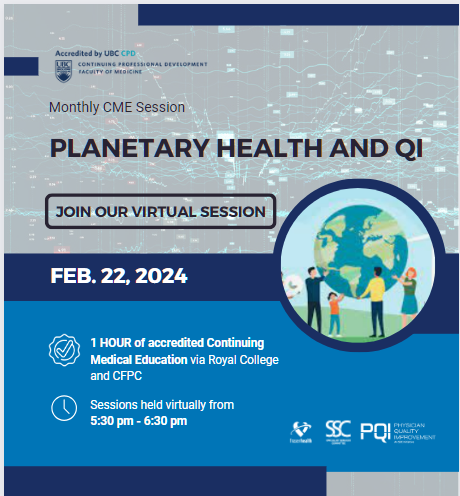 Fraser Health is offering an evening virtual session on Planetary Health and QI!
